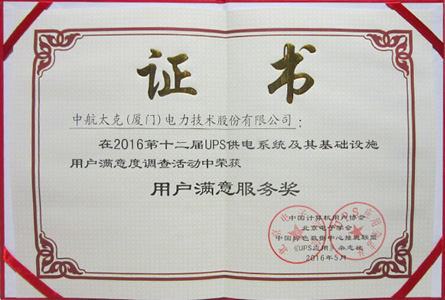 On May 20, 2016, avic-tec (Xiamen) Power Technology Co., Ltd. won the "user satisfaction service award" in the ups user satisfaction survey at the "2016 12th UPS power supply system and infrastructure technology summit and user satisfaction survey results disclosure conference" with the theme of "vitality, innovation, integration and development".