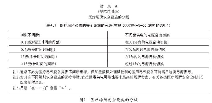 医疗场所分类及自动恢复供电时间参照了现行国家标准GB16895.24《建筑物电气装置第7-710部分:特殊装置或场所的要求医疗场所》和IEC60364-710。