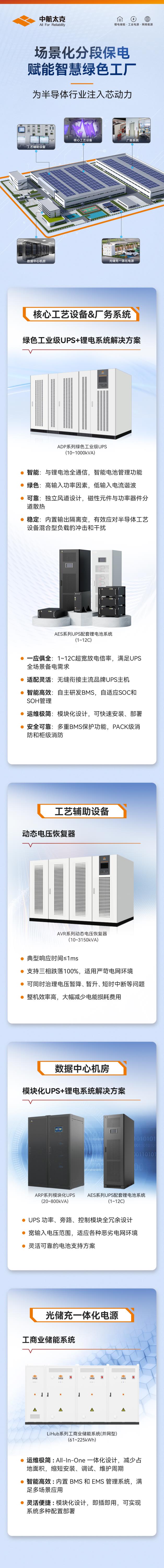 公司创新推出了ADP系列绿色工业级UPS(单机容量10-1000kVA),广泛应用于国内外头部半导体企业;AES系列UPS配套锂电池系统(1~12C放电倍率),满足UPS全场景备电需求,特别是针对半导体行业高功率短时间备电的场景,倾力打造8~12C高倍率UPS配套锂电池系统。