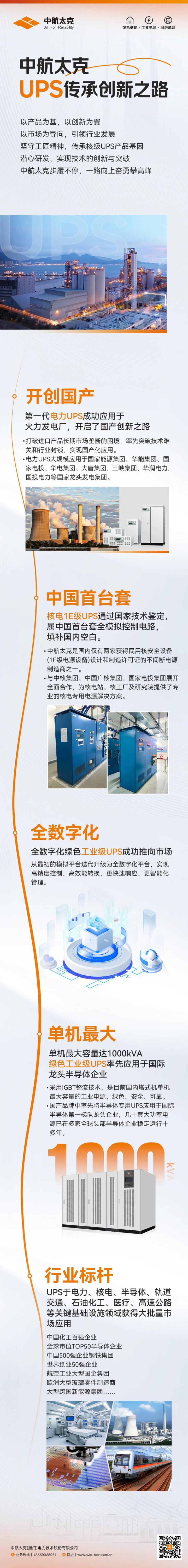 卓越技术实力——助力行业高效发展中航太克拥有20余年的电力能源领域的细分行业积淀,一路走来,在不间断电源系统领域,公司不断实现技术革新,并成功突破一系列技术壁垒,在国内细分市场树立了多个行业标杆,填补了国内技术领域的多项空白。如今,公司已逐步发展成为新型数字电力能源系统解决方案专家,深耕电力、核电、半导体、轨道交通、石油化工、数据中心、医疗等细分领域,是国内仅有两家获得民用核安全设备(1E级电源设备)设计和制造许可证的UPS制造商之一。