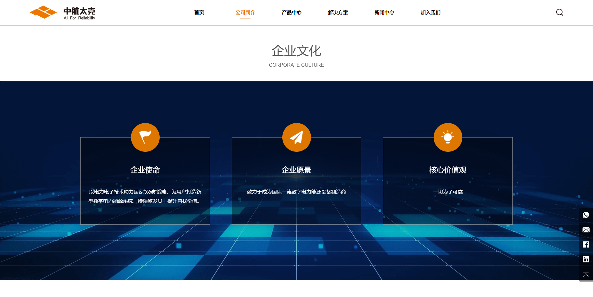 The navigation bar displays the company profile, product center, solutions, news center and joining our five major sections, so that customers can quickly and comprehensively understand the company's R&D strength and product characteristics, and reflect the company and industry development trends in real time. The new official website will better undertake the media. , to bring customers one-stop experience and service.